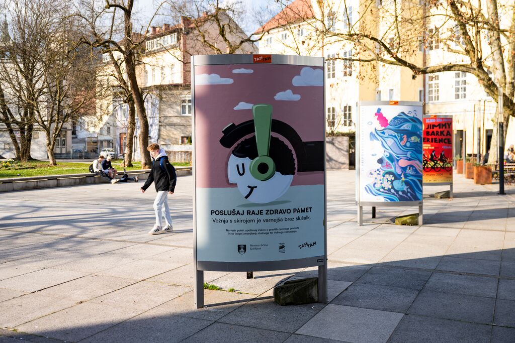 Da je sporočilo še lažje doseglo prava ušesa in možgane, smo oba plakata izobesili tudi na ljubljanskih osnovnih in srednjih šolah, v animirani obliki pa sta se predvajala tudi na digitalnih zaslonih v središču mesta.