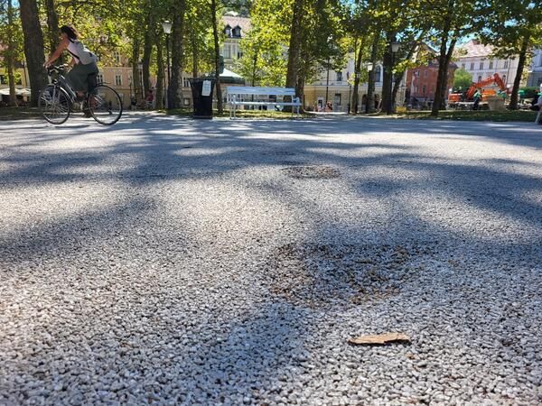Peščeni tlak bo izvajalec na lastne stroške kot popravilo napake saniral z odstranitvijo zaključne plasti s struganjem in z novo preplastitvijo celotnega osrednjega dela parka. Dela bodo potekala predvidoma do konca avgusta, na območju bo delna zapora.