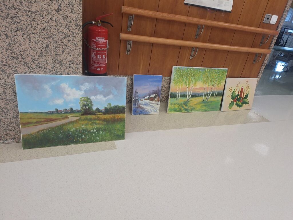 Prisotne so ob začetku dogodka pozdravili predstojnica oddelka dr. Ana Saksida, predsednica Društva ljubljanske pokrajine ter delovna terapevtka Tanja Stefanič Smišl. Član društva in slikar Željko Vertelj je na kratko povedal svojo življenjsko zgodbo in kako je po nesreči vzljubil čopič in platno.