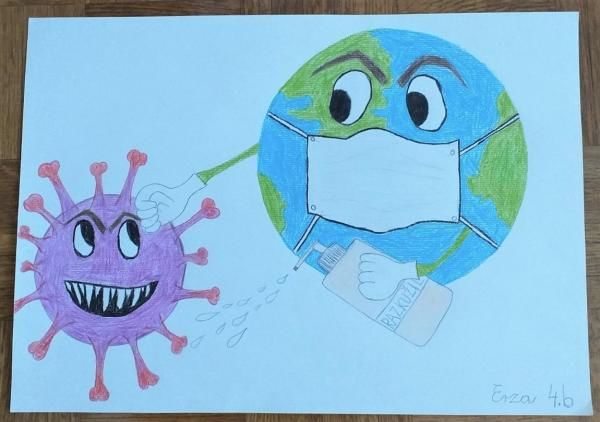 Učenka OŠ Valentina Vodnika je med spomladansko karanteno upodobila spopadanje z virusom.