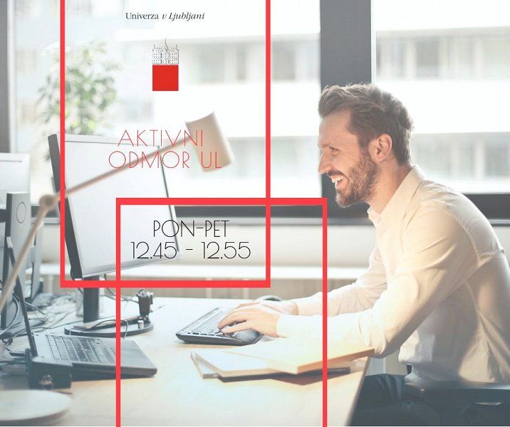 Aktivni odmor UL poteka vsak delovnik ob 12.45 uri prek ZOOM povezave https://uni-lj-si.zoom.us/j/3408063224 (Meeting ID: 340 806 3224) in traja največ 10 minut.