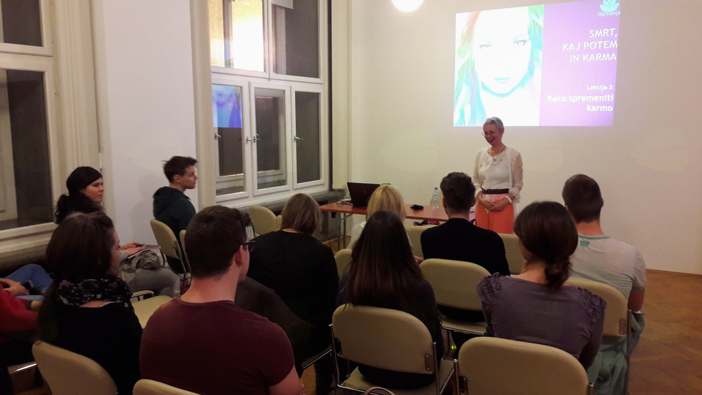 V Narodni in Univerzitetni Knjižnici v Ljubljani je v torek, 8. novembra 2016 potekal dogodek za študente z naslovom „Smrt, kaj potem in karma“. To je bilo drugo predavanje v sklopu tečaja za študente „Kako spremeniti karmo“, ki poteka vsak torek v zimskem študijskem semestru in bo trajal do 6. decembra 2016. Petra Guštin iz Holističnega Inštituta Harmonija je študentom osvetlila znanje s področja osebnostne rasti, duhovne rasti in spiritualizma. Namen dogodka je bil mladim omogočiti pridobitev socialnih kompetenc poleg študija in razmišljanje izven ustaljenih okvirjev. Učilnico so napolnili novega znanja željni študenti različnih smeri Univerze v Ljubljani, ki so se interaktivno vključili v predavanje. Po predavanju se je odprla diskusija med študenti in predavateljico, ki se je zaključila z okusnim prigrizkom.