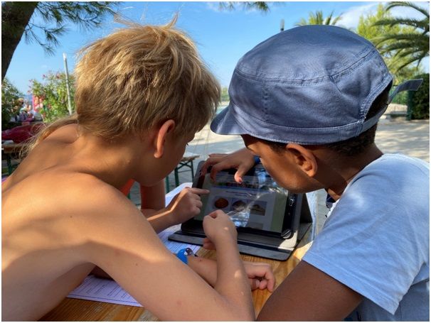 Ura je 11.00. Sonce že močno pripeka in borovci nas s kapljicami smole, ki so se prevečkrat znašle na naših oblačilih, vabijo v svojo senco. Otrokom na tabličnih računalnikih predstavimo določevalni ključ, s katerim nabrane in ulovljene organizme poimenujejo, jim določijo življenjski prostor, opišejo njihovo telesno zgradbo ter jih skicirajo.