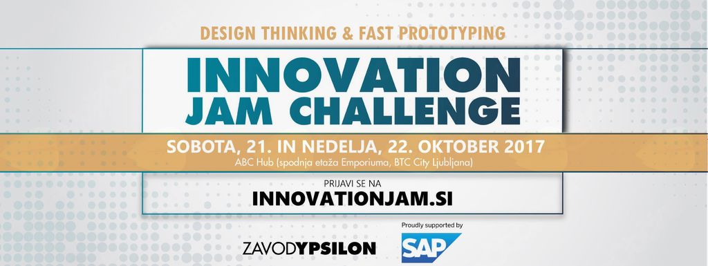 “Innovation Jam Challenge” se bo odvijal 21. in 22. oktobra 2017 v ABC Hubu (spodnja etaža Emporiuma, BTC City Ljubljana). Prijave sprejemamo do vključno nedelje, 15. oktobra 2017 na InnovationJam.si.