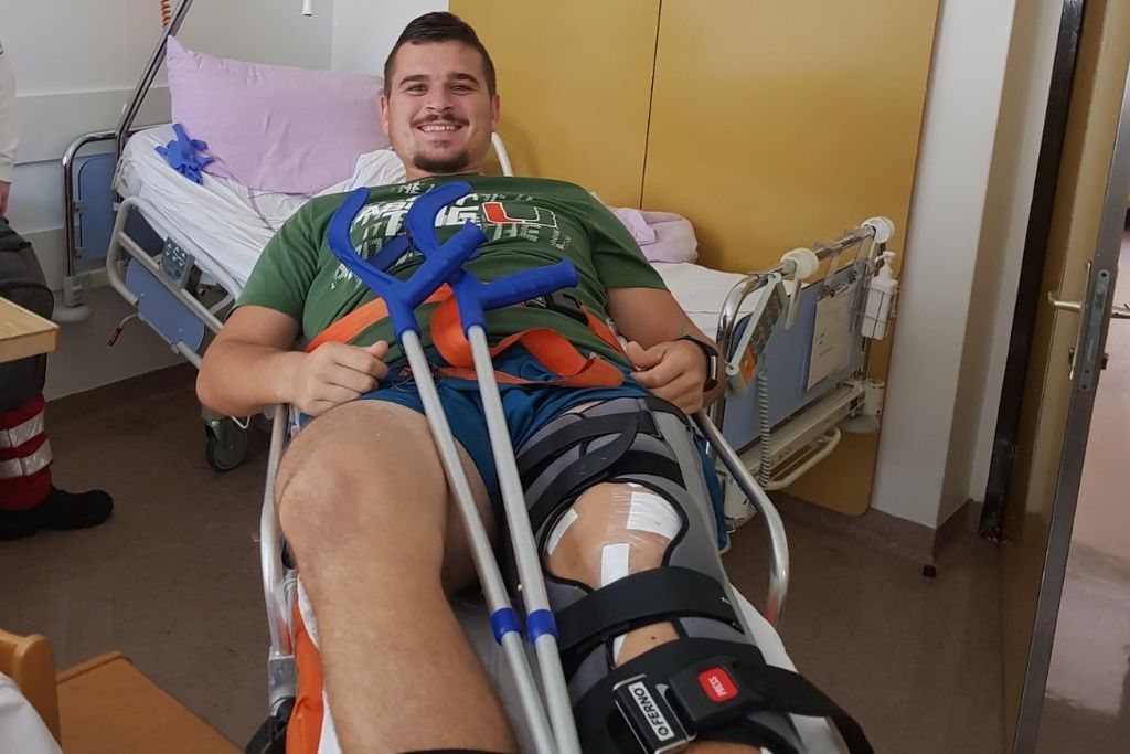 Hospitaliziran sem bil dva tedna. Ko sem zapustil bolnišnico, sem bil zmožen narediti le 50 metrov. Prve tri mesece je bila noga v longeti popolnoma iztegnjena, dokler se ni oteklina dovolj zmanjšala in sem lahko malo obremenil nogo. S fizioterapijo sem pričel kmalu po prihodu domov. Od septembra 2018 naprej imam fizioterapijo petkrat tedensko (ponedeljek in sreda šest ur, torek in četrtek uro in pol, petek pet ur). Poleg tega naredim veliko vaj tudi doma. Prvi trije meseci po poškodbi so bili zelo zahtevni ne samo zame, ampak tudi za mojo družino in punco. Potreboval sem pomoč pri vseh vsakodnevnih opravilih (obleči se, stuširati se, iti na fizioterapijo …). Sčasoma se je stanje izboljševalo. Malo pred božičem (171 dni po poškodbi) sem končno lahko zapustil stanovanje brez bergel.