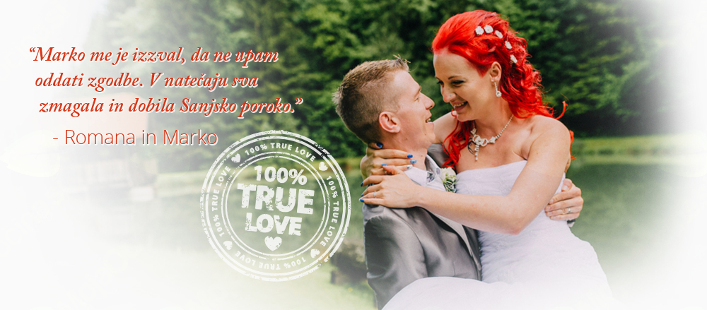 Usodni "da" sta z našo pomočjo dahnila Sara & Žiga in Romana & Marko, letos pa se bosta na že tretji Sanjski ona-on.com poroki poročila še Monika & Borut!