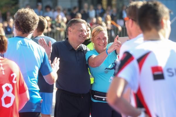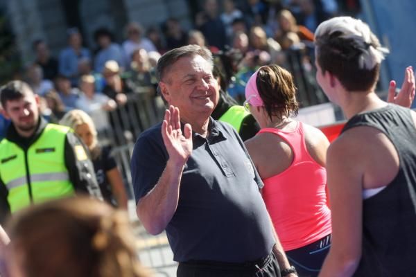 Župan Zoran Janković na cilju, zdaj že tradicionalno, pričaka tekačice in tekače ter jim podari »petko«.