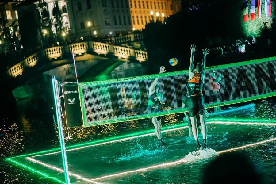 Točno 10 dni pred začetkom svetovnega prvenstva se je v Ljubljani odvijal pravi odbojkarski boj na Ljubljanici. Igralna površina je bila 10 cm pod vodno gladino, obrobljena pa je bila s svetlečimi LED lučmi, ki so označevale igralno polje.