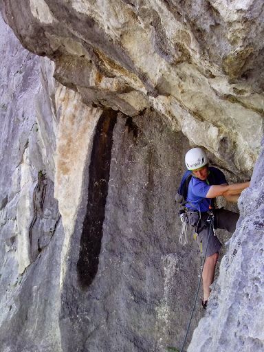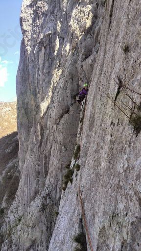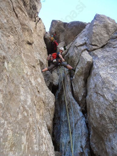Še isti dan sem skupaj z ostalimi tečajniki alpinistične šole AK Vertikala prvič vstopil v alpinistično smer. Ni bila prepadna, ne pretirano visoka, bila pa je ravno pravšnja, da sem v njej napravil prve alpinistične korake. Tega dne smo se naučili, kako v dolgi alpinistični smeri naveza lahko varno napreduje. Zabil sem svoj prvi klin, izdelal prvo sidrišče, prvič varoval soplezalca, samostojno plezal v vodstvu in ob koncu dneva opravil svoj prvi spust po vrvi.