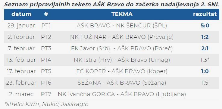 V vetrovni Sežani so igralci AŠK Bravo odigrali svojo šesto pripravljalno tekmo zime 2019. V Ljubljano se ekipa vrača dobro razpoložena, saj je zabila kar 5 golov.