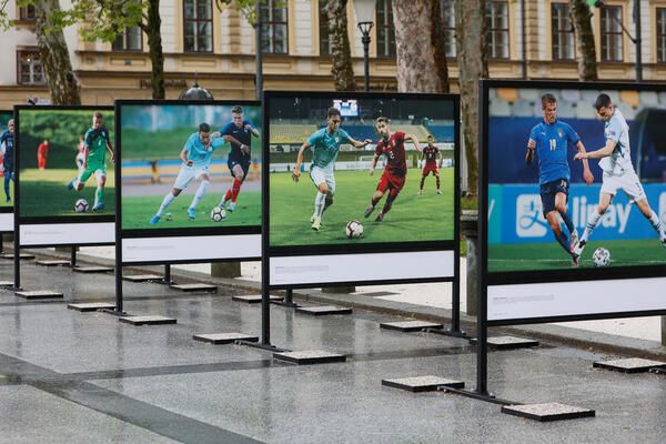 Nogometno vzdušje v Ljubljani se stopnjuje. Stritarjeva ulica je okrašena z odsluženimi nogometnimi žogami, pri KUL nogometni vitrini v sodelovanju z Radiem Ekspres poteka nagradna igra, v kateri ugibamo točno število žog, na Kongresnem trgu pa je na ogled fotografska razstava Mladi upi.