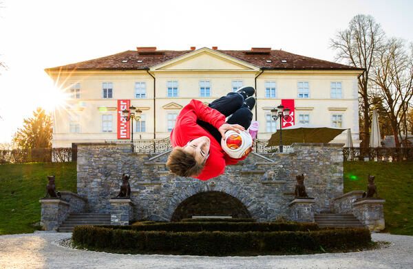 Nogometni navdušenci so tudi člani akrobatske skupine Dunking Devils, ki so si na različnih koncih Ljubljane podajali nogometno žogo.