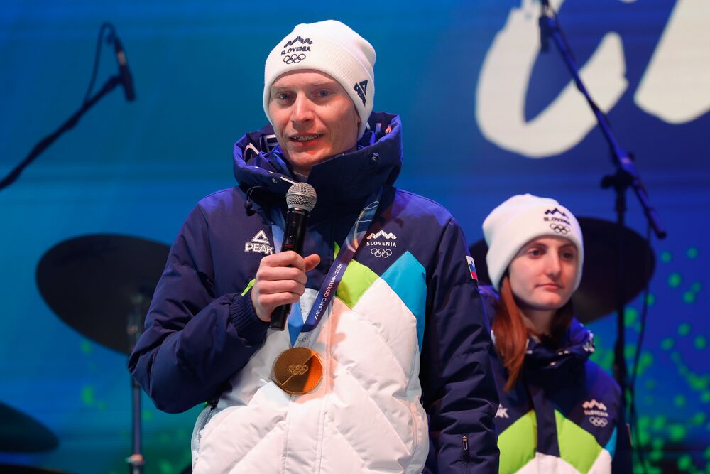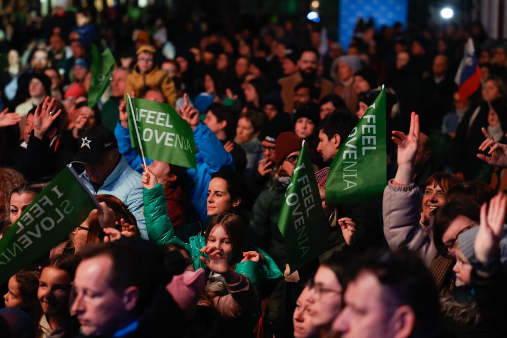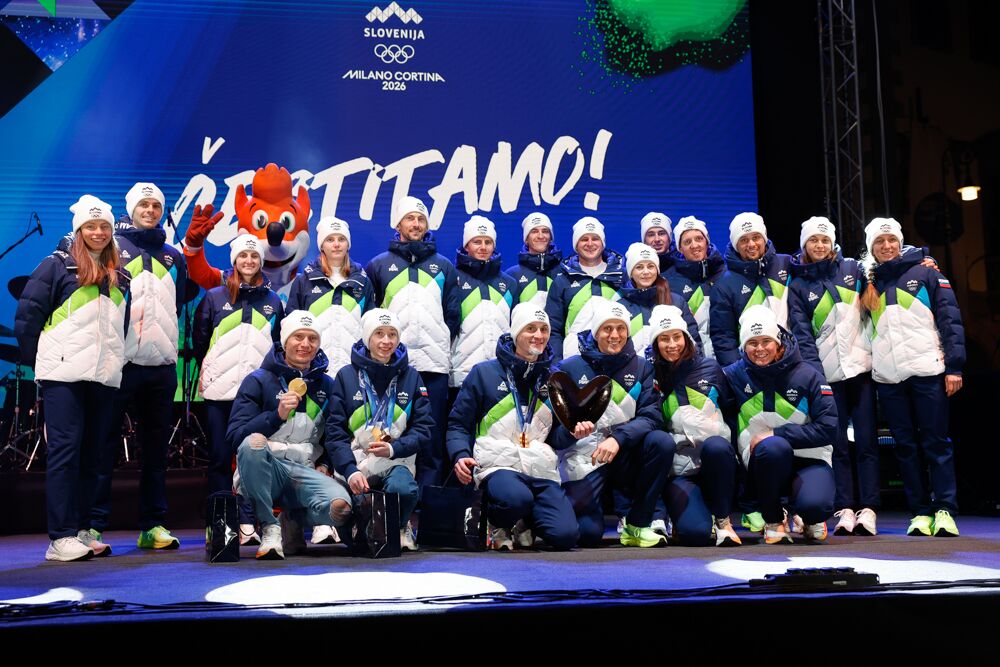 Množica navijačev je ponedeljek, 23. februarja 2026, v središču Ljubljane pozdravila športne junake, ki so se vrnili z zimskih olimpijskih iger v Italiji.