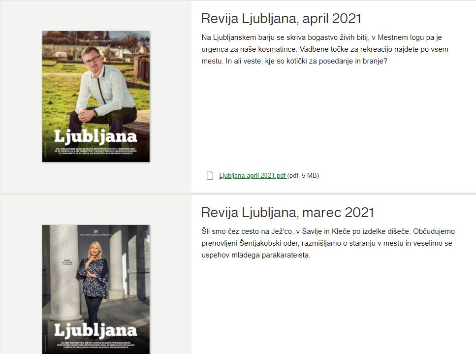 V kolikor Revije Ljubljana ne prejmete na dom, si lahko posamezne izdaje ogledate tudi na spletni strani Mestne občine Ljubljana.