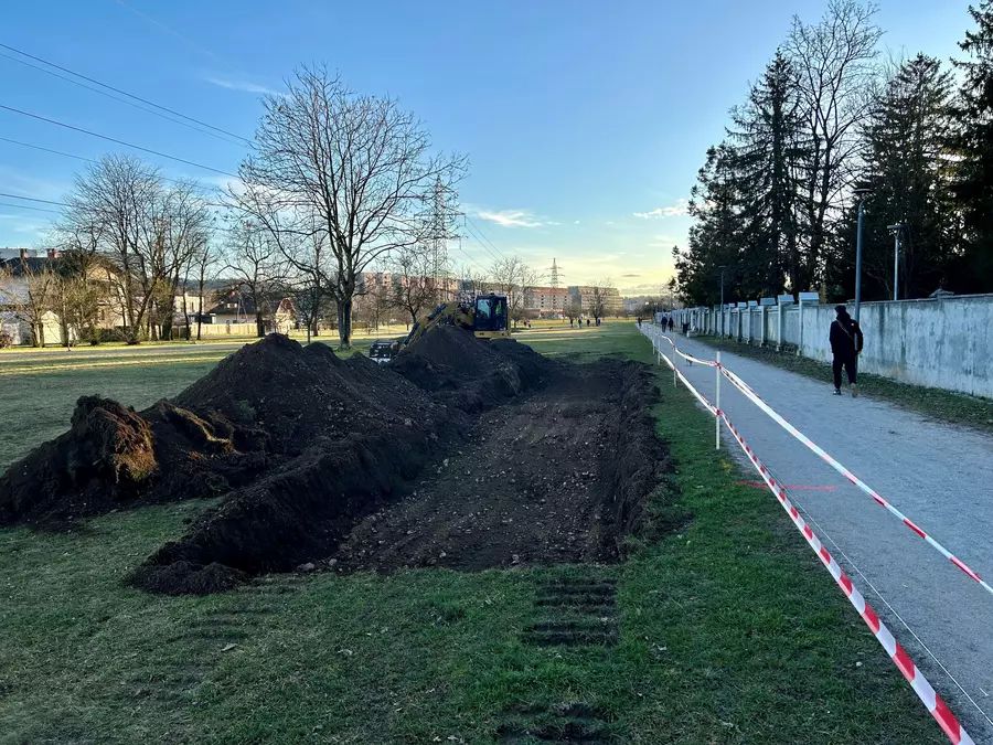 V Šmartinskem parku, ob zidu pokopališča Žale, smo izkopali dva jarka, vsak je dolg okoli 100 metrov, širok 4 metre in globok približno 80 centimetrov. Skladno z idejno zasnovo bomo drevesa zasadili v drevored, ki bo na sredini prekinjen zaradi plinovoda v tleh. Razdalja med drevesi bo približno 8 metrov.