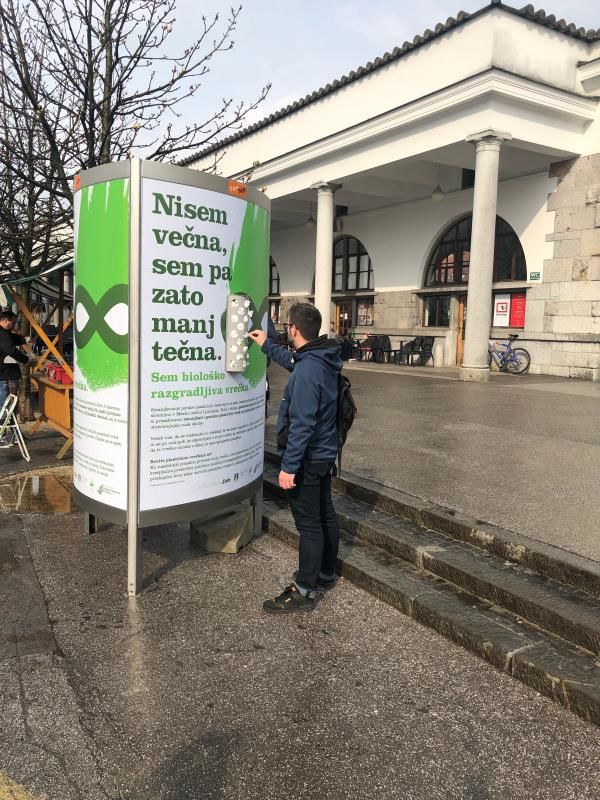 V okviru akcije Za lepšo Ljubljano smo na osrednji tržnici postavili vrečkomat, na katerem so si lahko kupci brezplačno vzeli biorazgradljivo vrečko. Predstavljamo tudi Priročnik za izdelavo vrečk iz trajnostnih materialov.