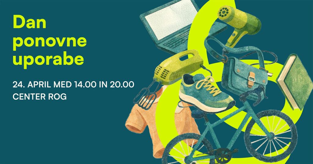 V petek, 24. aprila 2026, vas med 14. in 20. uro vabimo v Center Rog na Dan ponovne uporabe. Na dogodku, kjer bomo predstavili dobre prakse ponovne uporabe, boste lahko med drugim popravili tudi manjše naprave, osvežili kolo, predelali ali popravili oblačila, očistili superge ali pa se seznanili z možnostmi ponovne uporabe računalnikov. Prijave že zbiramo.