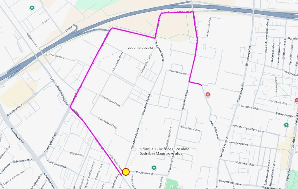 Zaradi rekonstrukcije ceste v sklopu ureditve javne infrastrukture Atletskega centra Ljubljana bo od ponedeljka, 23. februarja, do predvidoma 25. aprila 2026 popolna zapora križišča Ulice Alme Sodnik in Magistrove ulice.