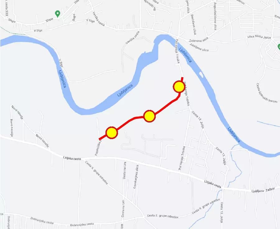 Obvoz bo možen iz smeri Litijske ceste in smeri Poti heroja Trtnika do zapore.
