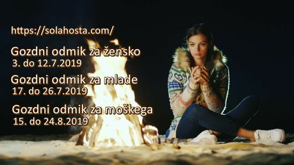 To poletje Gozdna šolo Hosta organizira 10 dnevne gozdne odmike za mlade, ženske in moške. Gre za najstarejši in najučinkovitejši način duhovnega zorenja, ki smo ga vse bolj potrebni. Manj ko smo v stiku z naravo, manj se poznamo. Manj ko se poznamo, ožja je naša zavest in manjša je osebna svoboda. Energijska osiromašenost je vzrok vsem stiskam, zmedam, sporom in nenazadnje boleznim. Nihče noče živeti tako.
