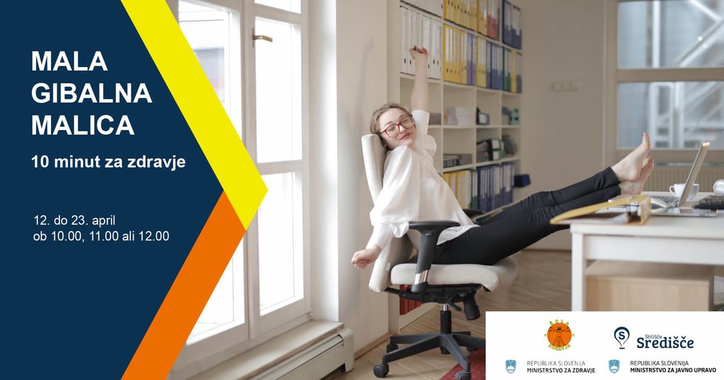 Vabljeni, da se nam vsak delovni dan pridružite pri 10 minutni vadbi ob uri, ki najbolj ustreza vam in vašemu delovniku, ob 10.00, 11.00 ali ob 12.00. S telovadbo smo pričeli ta ponedeljek, 12. aprila, ko se nam je pridružilo 80 udeležencev, v torek pa smo dosegli že 100 udeležencev.