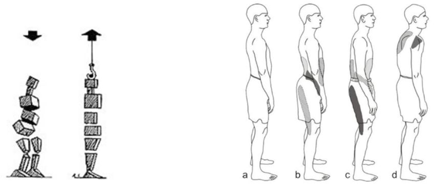 Najpogostejše poškodbe in bolečine so v področju hrbta, predvsem ledvenega dela in sakroiliacalnega sklepa, ramenskega obroča in kolen. Najpogostejši vzroki so nepravilno razmerje mišic (dinamično-sta-bilizacijsko razmerje), nepravilna drža in težišče telesa.