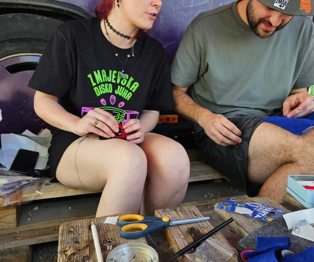 Dogodek so popestrili zvoki DJ Arneta in treh “mojstrov mikrofona”, ki so nas držali v ritmu disko vajba, medtem ko so ostali ustvarjali kreativen šiv z e-tekstilom: obeski, našitki in zapestnice iz filca s svetlečimi LED nitkami