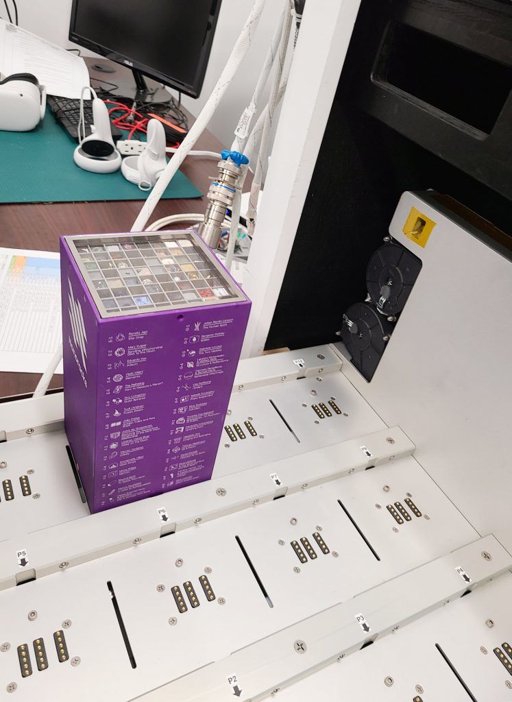 V sodelovanju s podjetjem Nanoracks, ki ga poganja Voyager Space bo keramična kocka postavljena v mrežo 8×8 celic MoonGallery, skupaj z ostalimi artefakti, ki jih predstavljajo umetniki iz Azije, Evrope, Severne Amerike, Južne Amerike in Afrike. Gre za mednarodno, skupinsko umetniško instalacijo, ki hrani semena prihodnje, skupne medplanetarne kulture. Postavitev prve razstave na vesoljski postaji pa nima samo kulturne in umetniškega poslanstva, ampak tudi znanstveni namen. Galerija ponuja raznoliko paleto materialov in vedenj, ki jih bodo na tej misiji testirali in preizkušali; umetniki pa bodo dobili priložnost spoznati delovanje svojih umetniških del v mikrogravitaciji.