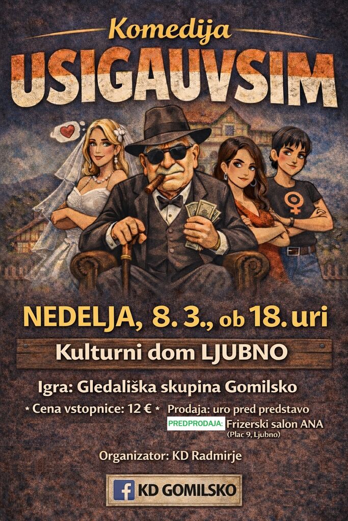v nedeljo, 8. 3., ob 18. uri v Kulturnem domu LJUBNO