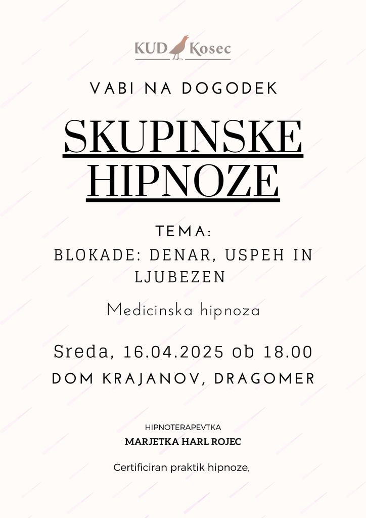 Organizator: KULTURNO UMETNIŠKO DRUŠTVO KOSEC LOG-DRAGOMER