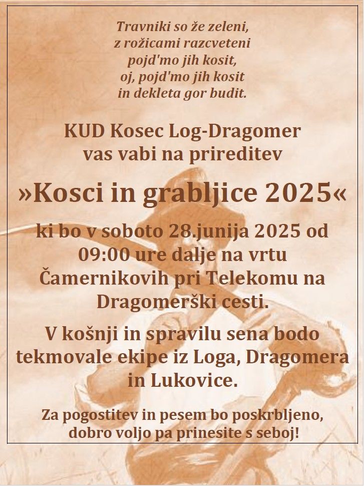 Kulturno - etnološka prireditev je namenjena ohranjanju starih običajev. Na dogodku se bodo različne ekipe koscev in grabljic pomerile v košnji in spravilu sena.