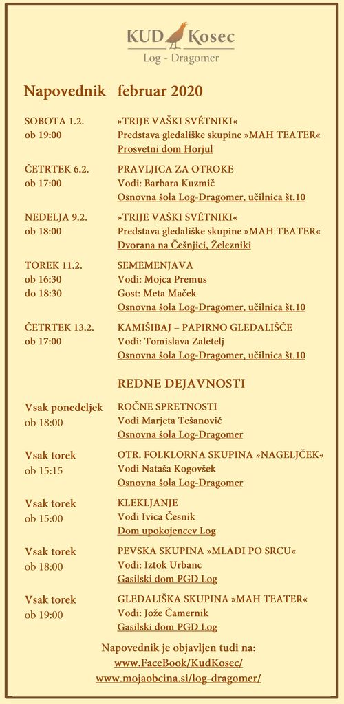 Organizator: KULTURNO UMETNIŠKO DRUŠTVO KOSEC LOG-DRAGOMER