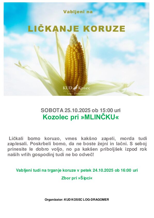 Organizator: KULTURNO UMETNIŠKO DRUŠTVO KOSEC LOG-DRAGOMER