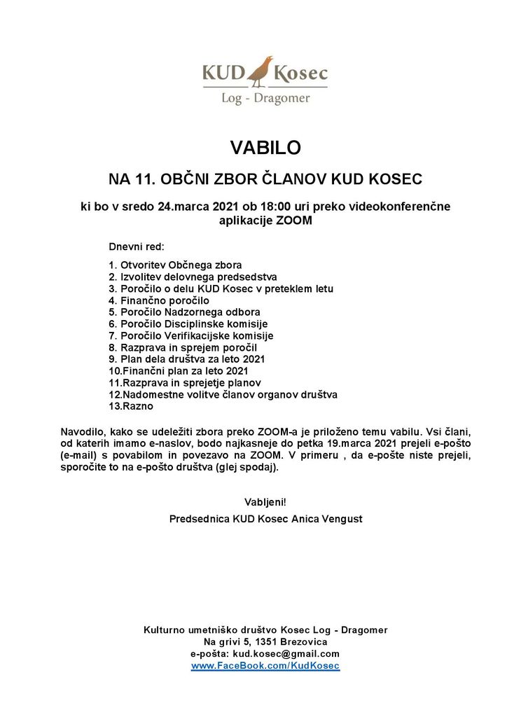 Kontaktni podatki organizatorja: kud.kosec@gmail.com.