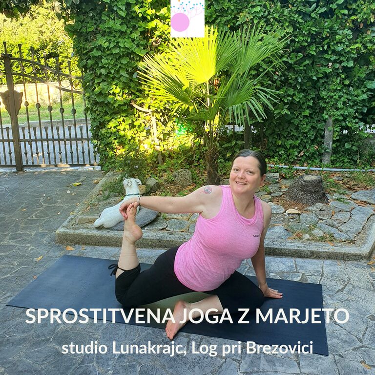 Sprostitvena joga z Marjeto je 8-tedenski program, ki obsega sedem (7 ) vadb po 75 minut in osmo, zadnjo vadbo, ki je joga obred z jogo nidro in traja 90 minut. V tem programu je poudarek na odpiranju sklepov in pripravi telesa na jogijske položaje. Uro začnemo z uvodnim sproščanjem in končamo z meditacijo. Za dodatno energijsko podporo pri vadbi prejme udeleženka tudi žepni kristal.