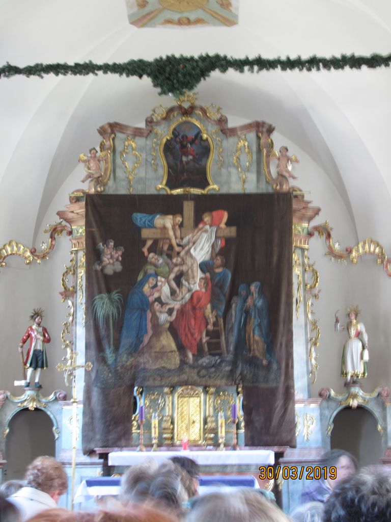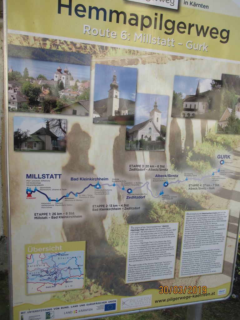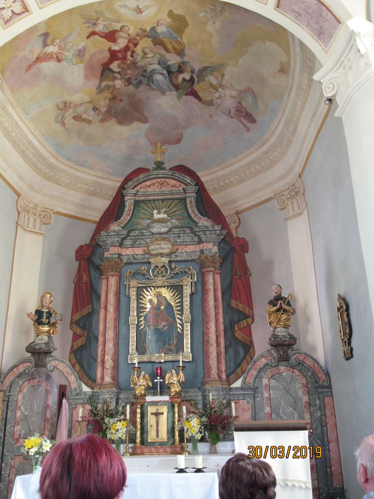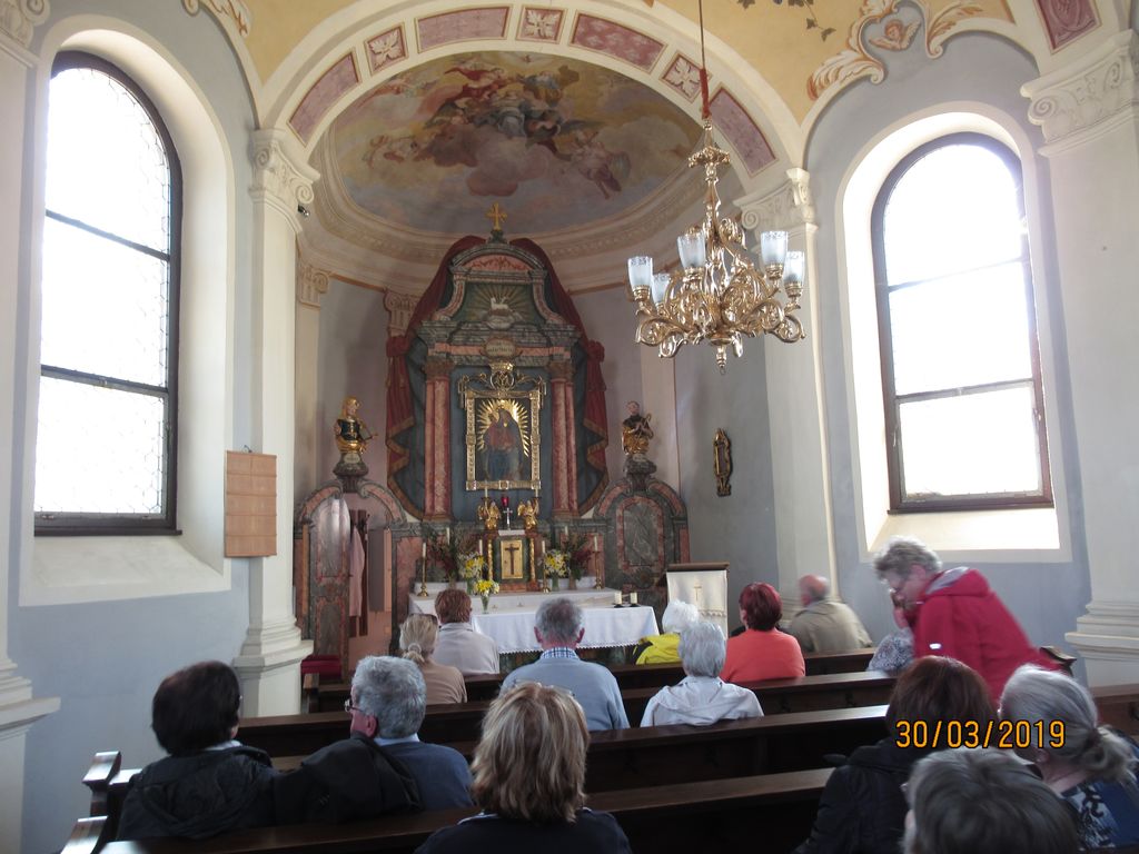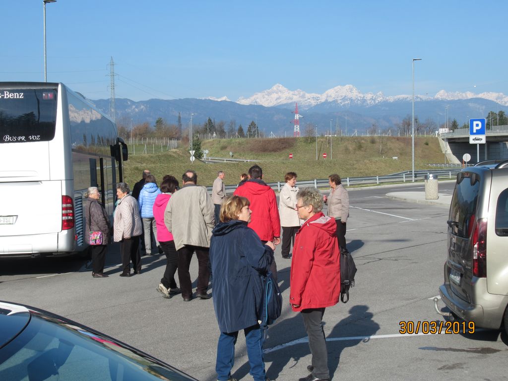 Čudovit sončen dan smo pričeli z jutranjo molitvijo in premišljevanjem križevega pota. Po postanku na počivališču v Radovljici smo pod Karavankami nadaljevali pot v Avstrijo, kjer smo kmalu za mejo pobrali vodičko go. Ivanko Kronawetter, rojeno Starman. AC smo zapustili v Beljaku in pot nadaljevali po ozki in senčni dolini čez Trebinje, Zoberce in Obernšec do našega prvega cilja RADENČE, kjer smo v cerkvi sv. Miklavža najprej počastili Jezusa, zapeli pesem, potem pa si ogledali postni prt, ki prekriva glavni oltar. Ob koncu smo se zaustavili še ob relikvijah svetega papeža Janeza Pavla II. Pot smo nadaljevali mimo Miljskega jezera v MILJE.