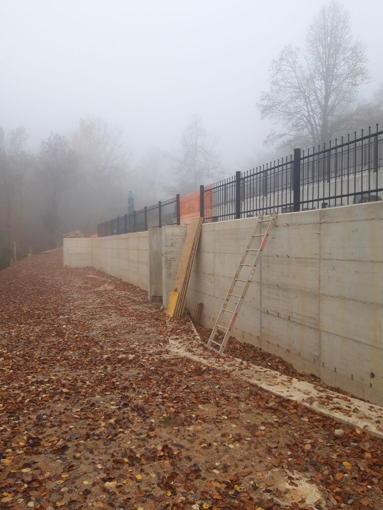 V sklopu izdelave armiranobetonskega opornega zidu je izbrani izvajalec izvedel opaževanje, armiranje in betoniranje pasovnih temeljev za žarne niše ter na opornem zidu postavil ograjo. V prihodnjih tednih bo izvajalec ograjo dopolnil še na območju stopnišč, dela naj bi bila zaključena še ta mesec.