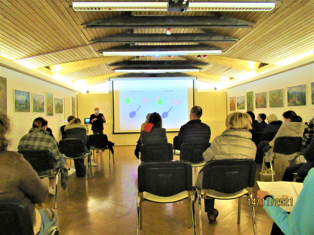 Lili Skodlar je od leta 2014 naprej spremljala okoli 430 bolnikov in mnogim pomagala k boljšemu življenju. Na srečanju je predstavila stopnje bolezni in zdravljenja. Skupaj pa smo preizkusili tudi nekaj vaj. Tudi v prihodnje je pripravljena z nami odkrivati znake depresije in pomagati, da bi lažje živeli. Zainteresirani za omenjene delavnice, ali pa za podobno predstavitev vaših talentov na prihodnjih Antonovih večerih pa to lahko sporočite g. Jožetu Pojetu (040 395 942) ali meni. Lili in Marku Skodlarju pa še enkrat čestitke za doseženo in iskrena hvala za predstavitev in za sodelovanje tudi v naprej.