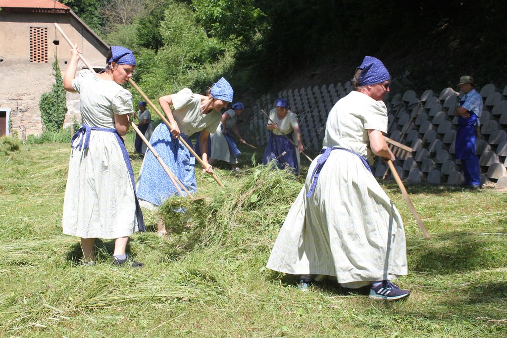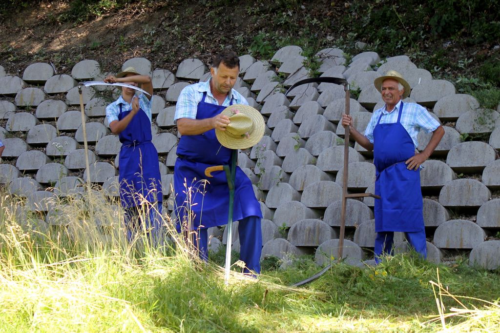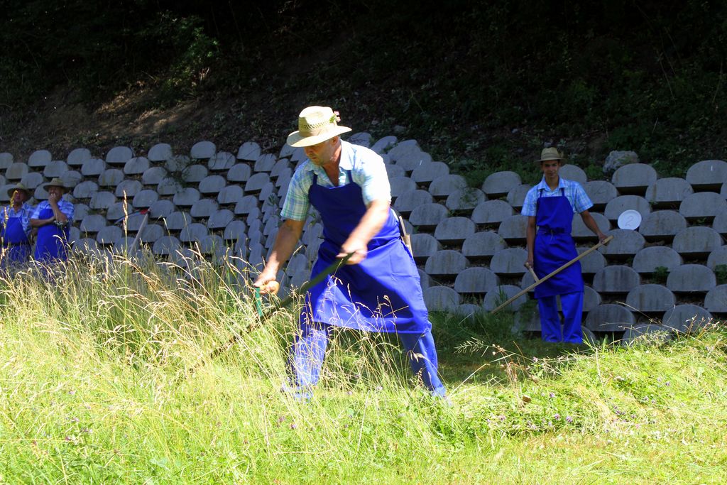 Tekmovanje koscev in grabljic, ki v ospredje postavlja stari običaj košnje in grabljenja, je tudi tokrat privabilo lepo število obiskovalcev. Ti so na kulturno etnološki prireditvi spoznali kmečko opravilo, ki so ga kosci in grabljice nekoč opravljali ročno. Kot so nam povedali v Sekciji za ohranjanje kulturne dediščine, ki deluje pod okriljem KUD Kosec, so košnjo in grabljanje vse do sredine prejšnjega stoletja izvajali ročno. »Kosili so dvakrat letno, enkrat spomladi, drugič poleti. Za košnjo so kmetje običajno najeli kosce, ki so s košnjo začeli zgodaj zjutraj. Oblečeni so bili v srajce in delovne hlače, za pasom pa so nosili oselnike. Travo so pokosili v rede, ki so jih ženske po zajtrku z grabljami in vilami raztrosile, da se je trava hitreje sušila.« Podobno je bilo tudi na tokratni prireditvi, le da je ta potekala pozno dopoldan, grabljice pa so travo, potem, ko so s svojim delom zaključili kosci, pograbile v lične kopice.