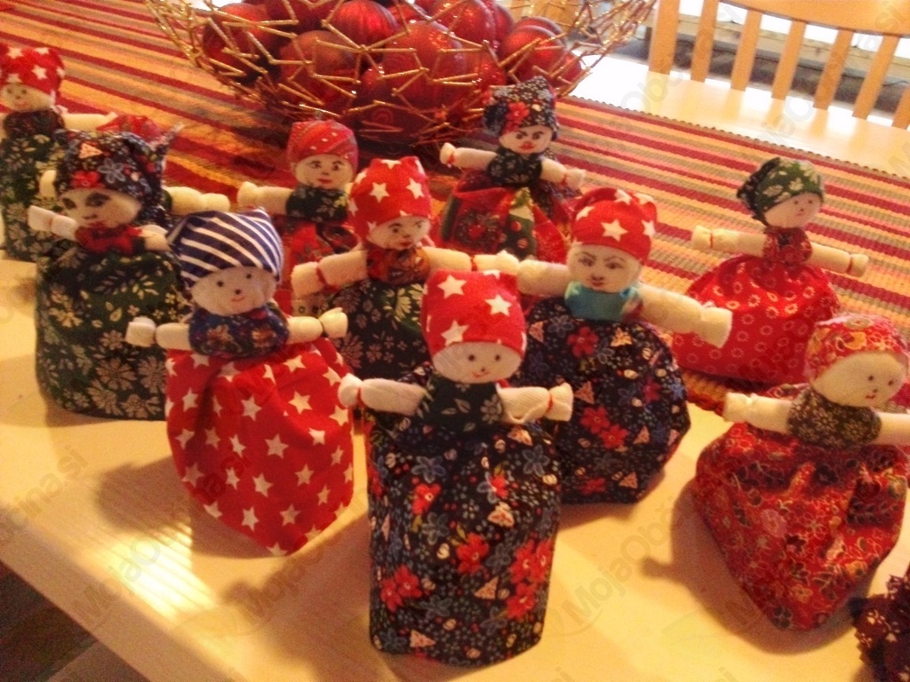 Na delavnicah ročnih spretnosti smo decembra in januarja pridno izdelovali prekrasne punčke iz cunj. Za izdelavo ene punčke je vsak posameznik porabil slabo uro, seveda pa je bil porabljen čas odvisen tudi od samega navdiha, spretnosti in števila dodatkov, ki si jih je ustvarjalec zamislil. Skrivnost izdelave punčke iz cunj je ustvarjanje brez šivanke in šiviljskega stroja, nam je zaupala Ana Vrenk. Poleg punčk smo izdelovali tudi okrasne kapice za steklovino iz kartona in volne. Vsi ustvarjalci, ki so se udeležili delavnic, so ob ustvarjanju zelo uživali in z zanimanjem ter navdušenjem sledili poteku dela.