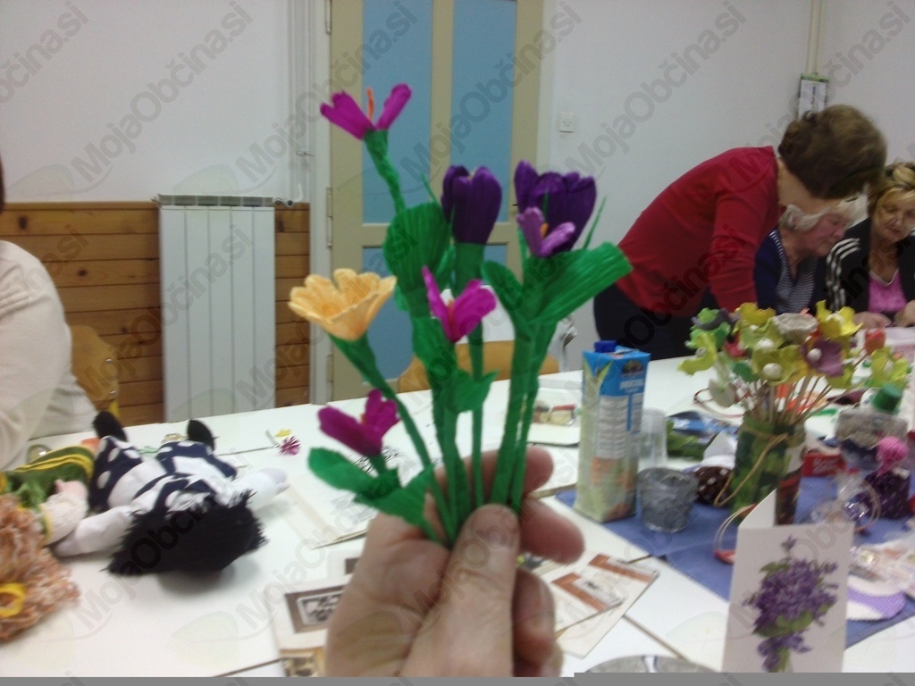 V naših novih prostorih smo gostili KUD Drenov grič in z njimi izmenjali izkušnje, skupaj pa smo naredili tudi prekrasen spomladanski šopek cvetlic iz papirja.