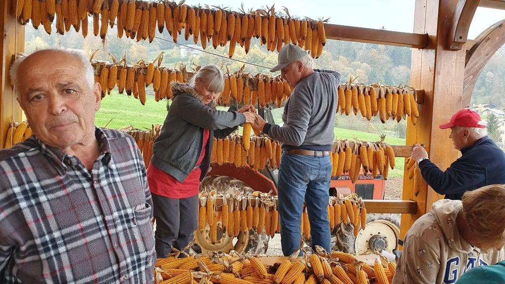 Dragomer, 25. oktober 2024: Tradicionalno ličkanje koruze, ki v občini Log-Dragomer že leta ohranja spomin na staro kmečko življenje, je letos obrnilo nov list. Po letih zbiranja na Logu je Sekcija za ohranjanje kulturne dediščine in starih običajev, ki deluje pod okriljem KUD Kosec, dogodek prvič pripravila v Dragomerju. Gostoljubno jih je pod popolnoma novim toplarjem sprejel Aleš Tola, ki si želi, da bi kmečki objekt postal prostor druženja njegovih prijateljev in krajanov.