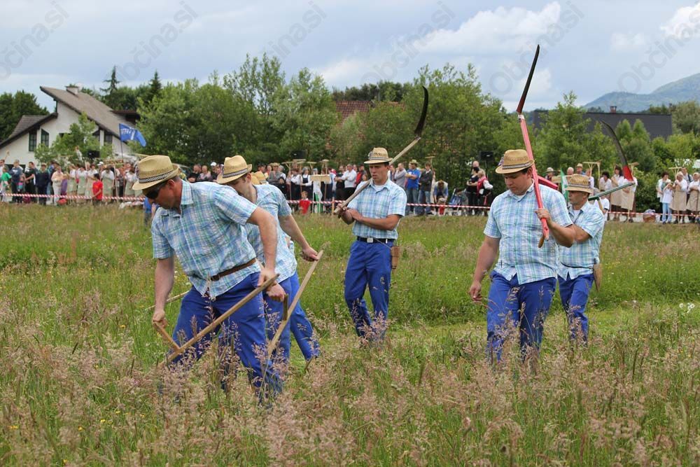 Po uvodnih pozdravih in krajšem kulturnem programu v izvedbi učencev Osnovne šole Log - Dragomer je pisana druščina krenila do bližnjega travnika, kjer se je začelo zares. V visoko travo so s svojimi kosami prvi zarezali kosci, za njimi pa so travnik hitro grabile grabljice, ki so pripravile dvanajst kopic. Nato pa so precej manjši travnik kosili in grabili še posamezniki. Na koncu je svoje delo opravila sodniška ekipa, ki je pri koscih ocenjevala poravnavo, čistost in enakost rezi ter opravo. Pri grabljicah pa so bili pozorni na čistost grabljenja, poravnavo in obliko kopic ter sorazmernost njihove postavitve. Nekaj pa je k rezultatu doprinesla hitrost košnje in grabljenja.