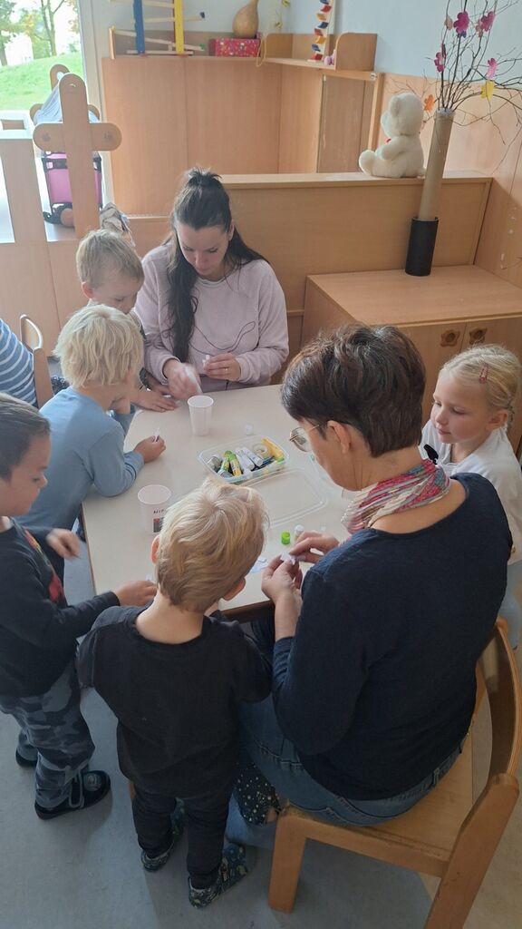 V dveh skupinah otrok, starih od 4 do 5 let, so nastale prikupne prstne lutke, v skupini starejših otrok, starih od 5 do 6 let, pa so otroci narisali medvede in izdelali lutko iz odpadnega materiala. Ob koncu so se z novimi lutkami poigrali ter tako še enkrat oživili zgodbo o skrbnem medvedu, ki išče pestunjo za svoje potomce.