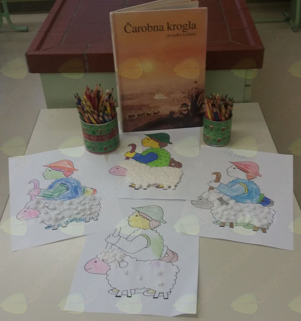Po pravljici so otroci še ustvarjali. Vsak je pobarval svojega pastirčka in iz vate oblikoval ovčko. Ker nas ni bilo veliko, smo imeli več časa za pogovor. Zapeli smo tudi pesem Pastirička žgance kuha in Kekčevo pesem.