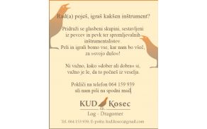 Pokliči na telefon 064 159 939 ali nam piši na naslov kud.kosec@gmail.com.