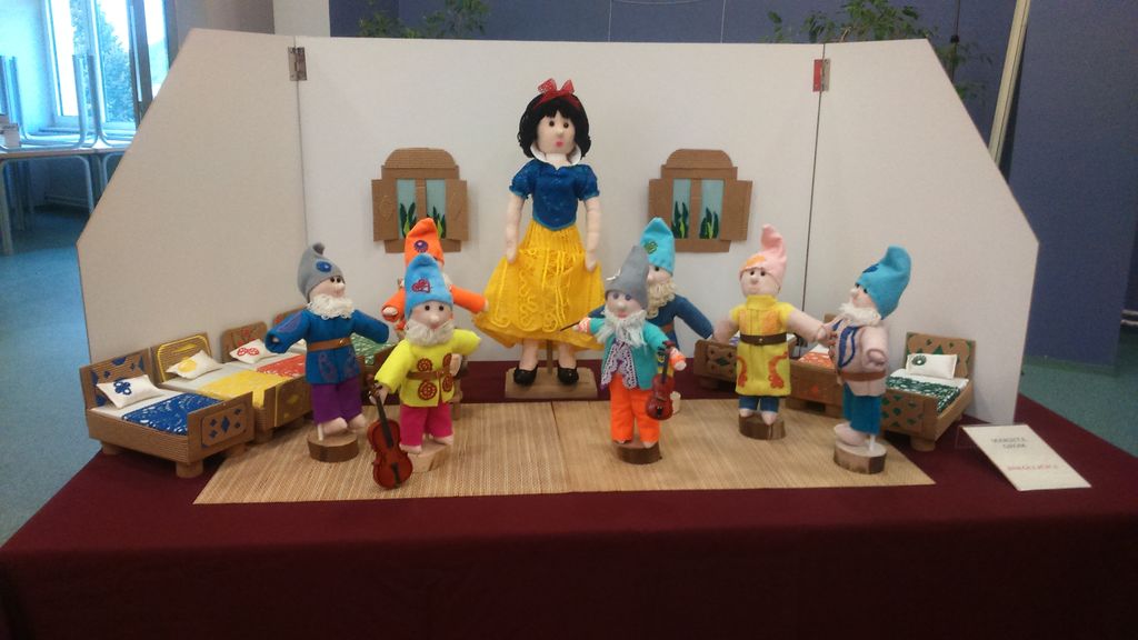 Med klekljanimi izdelki smo občudovali pravljične junake oblečene v klekljane čipke in postavljene v okolja, kot smo jih vajeni iz knjig in filmov. Med njimi niso manjkali niti Trnuljčica in princ, Pepelka, Sneguljčica in sedem palčkov, Pika Nogavička z gospodom Fickom, Janko in Metka, Mala morska deklica in še veliko drugih, bilo jih je kar 36! Klekljarice skupine Punkeljc so neutrudno klekljale čez vso jesen in zimo, ter tako obogatile lutke s klekljanimi oblačili.