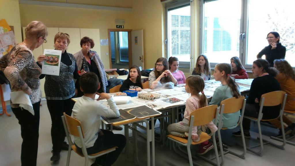 V želji po ohranjanju kulturne dediščine  smo izvedli delavnico velikonočnih belokranjskih pisanic.  Delavnico sta vodili Janja in Draga. Na tem mestu bi se jima iskreno zahvalila, da sta svoje znanje delili z nami in da se tudi ta del kulture ohranja in prenaša iz generacije v generacijo. In kako smo delali: najprej smo pripravili izpihana jajca tako, da smo jih prebodli na nasprotnih straneh po dolžini. Izpihali smo vsebino. Delovno mesto smo zaščitili s časopisom, pripravili čebelji vosek, svečo in pisalko. Pisalko smo napolnili  z voskom, ga segreli nad plamenom in začeli risati po jajcu. Oblikovali smo poljubne vzorce.  Ko je  jajce bilo  poslikano z vseh strani in lepo zapolnjeno, smo  ga potopili  v rdečo barvo. Nato  smo še enkrat nanesli vosek na tiste površine, za katere smo želeli, da ostanejo rdeče.  Jajce smo potem potopili v črno barvo. Ko so  se jajca posušila, smo jih dali v pečico na 50 stopinj, da se je vosek utekočinil (približno 5–10 minut). V tem času smo pripravili  rdeče volnene cofke in jih potegnili skozi odprtinice jajc. Tako so bile belokranjske pisanice nared za velikonočno dekoracijo. Delavnica je potekala v duhu medgeneracijskega sodelovanja, kajti  otroci so s svojo domišljijo popestrili druženje.  Bili so navdušeni nad ustvarjanjem in še kar naprej bi ustvarjali in ustvarjali.
