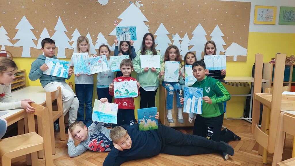 Otroci so zgodbe pozorno poslušali in jih nato ustvarjalno podoživeli z risbami.