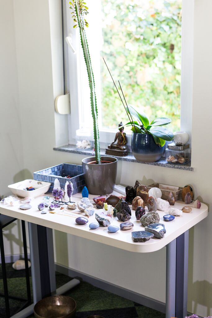 Tretji del njenega delovanja so kristali, ki jih Marjeta uporablja pri meditacijah in energijskih terapijah. Njihovo delovanje razlaga preprosto: »Kristali niso čarovnija, ampak pomoč. Vsak izmed njih nosi vibracijo, ki nas lahko podpira pri določenem čustvenem ali telesnem ravnovesju.«